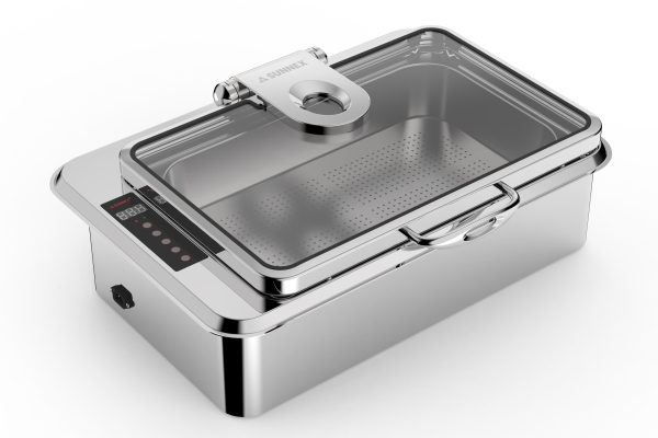Bingkai keluli tahan karat 304 dan kemasan cermin cermin memastikan panjang umur, sementara kaca yang teguh membolehkan pemantauan makanan tanpa penyingkiran penutup.
