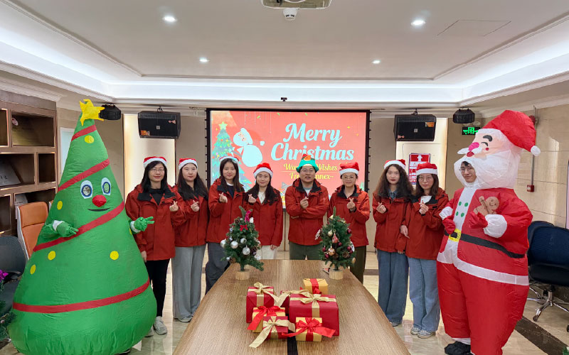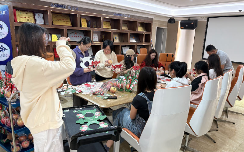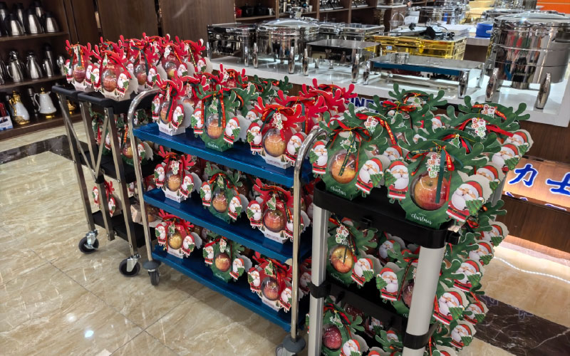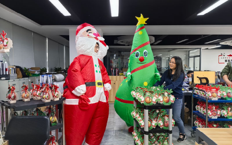 Nyanyikan lagu, "Kami mengucapkan Selamat Hari Krismas kepada anda, kami mengucapkan Selamat Hari Krismas….”, dibungkus epal merah yang indah dan besar bersama-sama makna damai, dan kemudian Santa Claus kami menghantar dua epal yang aman bagi setiap kakitangan kebahagiaan berganda, wow, sangat manis seperti keluarga besar.