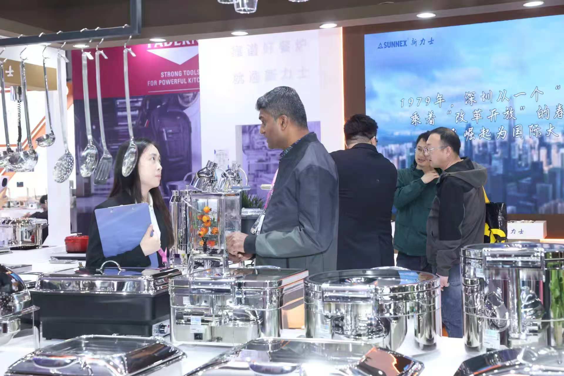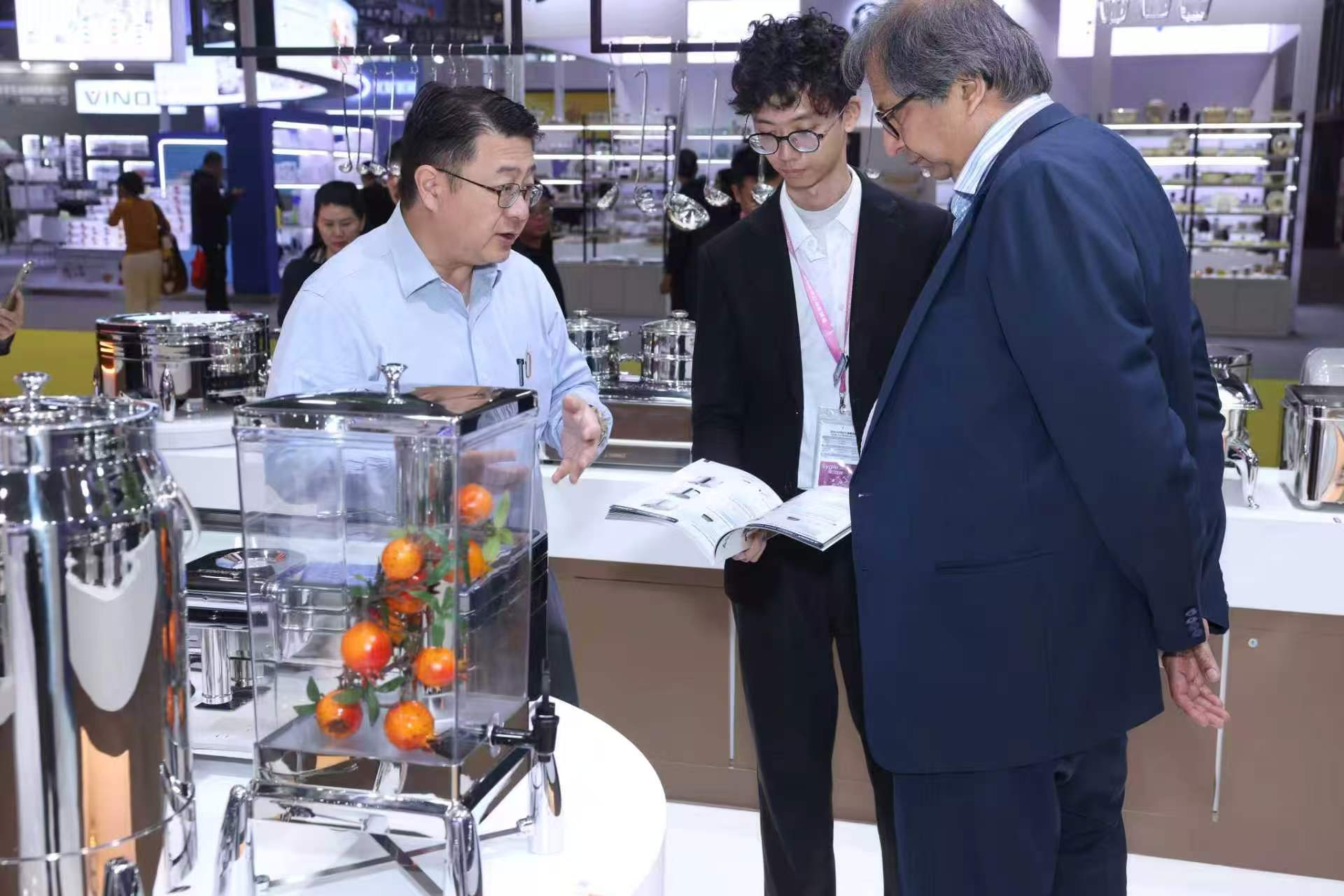 Semasa pameran itu, jenama itu menumpukan pada mempamerkan buku terlaris termasuk hidangan kering tanpa air, kuali gastronorm keluli tahan karat klasik, tempayan susu siri Verona, dispenser minuman tiub ais dan produk baharu lain, memenuhi pelbagai keperluan hotel mewah, jenama katering rantaian dan kantin kakitangan. Gerai kami menerima kunjungan berterusan daripada pembeli luar negara profesional di seluruh Timur Tengah, Afrika, Eropah, Amerika dan Asia Tenggara. Pasukan profesional kami menyediakan pengenalan produk satu-satu dan sokongan penyelesaian tersuai untuk perbincangan kerjasama yang mendalam.